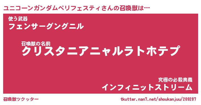 | 伝説のあだ名 | 『封印されしスナイパーユニコーンガンダムペリフェスティ』 |