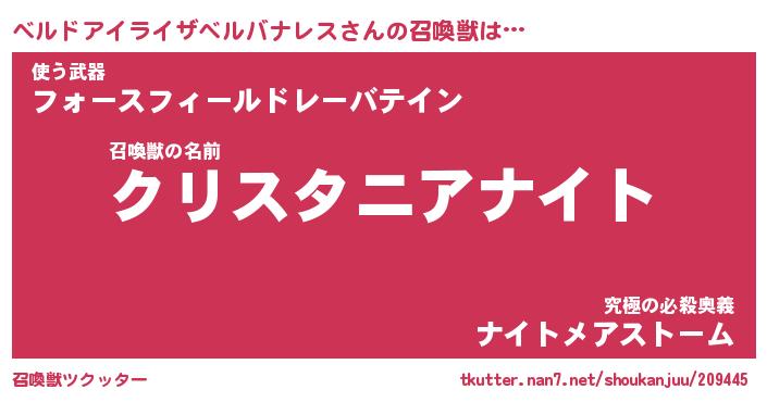 | 女子向けラノベタイトル風あだ名 | 『誰かこのベルドアイライザベルバナレスを説明してください! ~契約から始まるウェディング~』 |