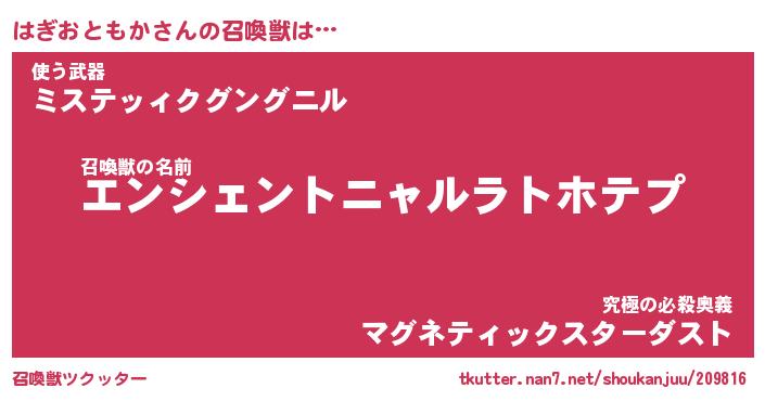 | 胡散臭い通販商品みたいなあだ名 | 『必ず成功する霊験あらたかなお札…その名も「はぎおともか」』 |