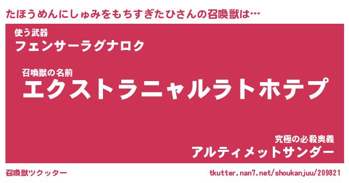 | ヒーロー風カッコイイあだ名 | 『スーパータホウメンニシュミヲモチスギタヒ』 |