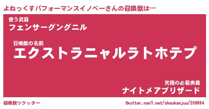 | 伝説のあだ名 | 『伝説のスナイパーよねっくすパフォーマンスイノベー』 |