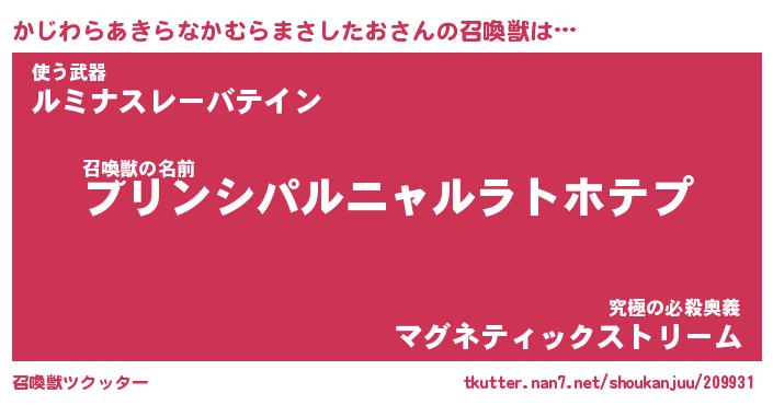 | 肩書あだ名 | 『かじわらあきらなかむらまさしたお御曹司』 |