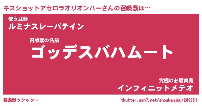 | 女子向けラノベタイトル風あだ名 | 『キスショットアセロラオリオンハー姫と円卓の騎士』 |