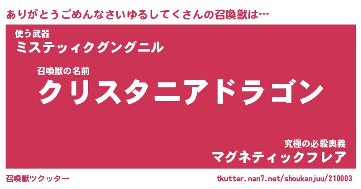 | 伝説のあだ名 | 『封印されし竜騎士ありがとうごめんなさいゆるしてく』 |