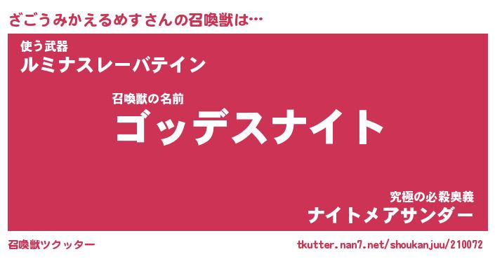 | 女子向けラノベタイトル風あだ名 | 『ざごうみかえるめす姫と円卓の騎士』 |