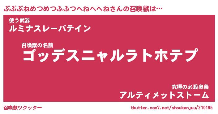 | 料理風あだ名 | 『節約★ぷぶぷねめつめつふふつへねへへねと油揚げの玉子丼』 |