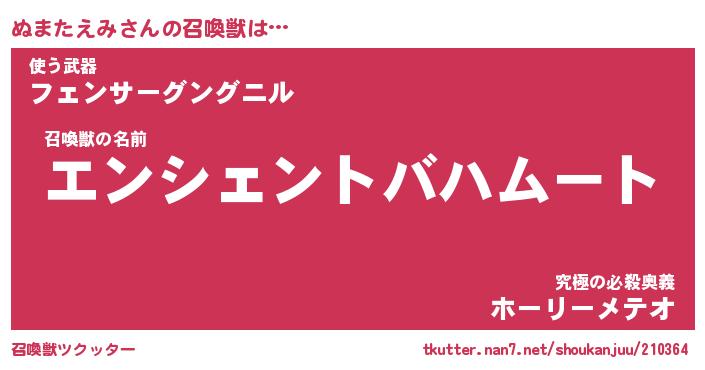 | ファンタジー風あだ名 | 『ヌマフェル』『エターナルヌマタエミー』 |