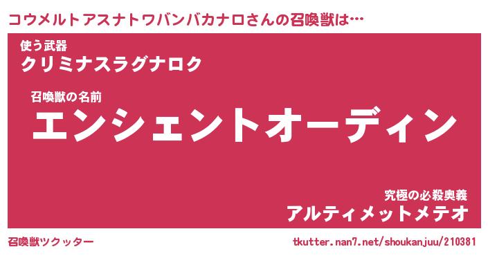 | 胡散臭い通販商品みたいなあだ名 | 『必ず成功する霊験あらたかなお札…その名も「コウメルトアスナトワバンバカナロ」』 |