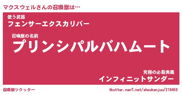 | 女子向けラノベタイトル風あだ名 | 『マクスウェル姫と円卓の騎士』 |