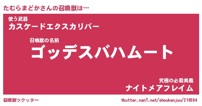 | ヒーロー風カッコイイあだ名 | 『スーパータムラマドカ』『天弓騎士タム』 |