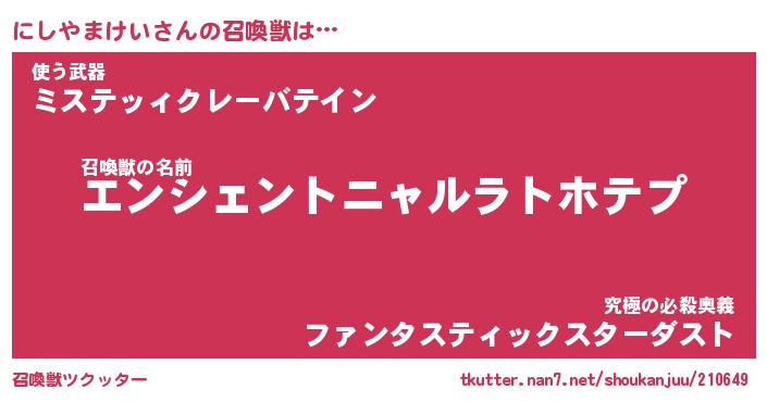 | ファンタジー風あだ名 | 『ニシフェル』『ファントムニシス』 |