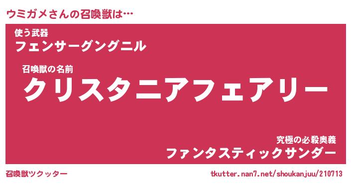 | ファンタジー風あだ名 | 『ウミフェル』『エターナルウミガメー』 |