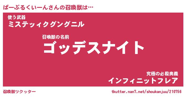 | 女子向けラノベタイトル風あだ名 | 『ぱーぷるくいーん姫と円卓の騎士』 |