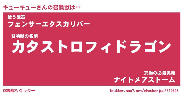| 伝説のあだ名 | 『封印されし竜騎士キューキュー』 |
