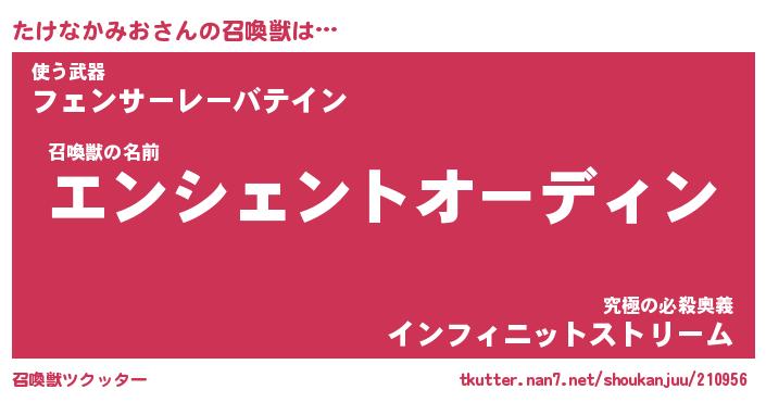 | 男性向けラノベタイトル風あだ名 | 『たけなかみおの憂鬱』 |