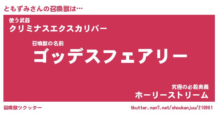 | 女子向けラノベタイトル風あだ名 | 『ともずみ姫と円卓の騎士』 |