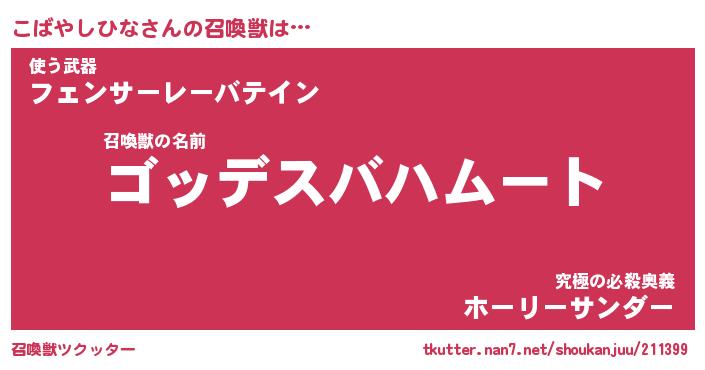| 伝説のあだ名 | 『不死鳥の竜騎士こばやしひな』 |