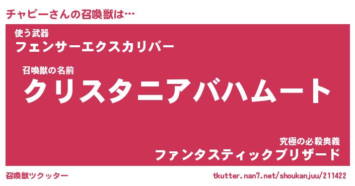 | ファンタジー風あだ名 | 『チャフェル』『エターナルチャピーー』 |