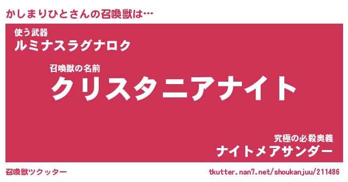 | 伝説のあだ名 | 『封印されしスナイパーかしまりひと』 |