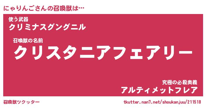 | ファンタジー風あだ名 | 『ニャフェル』『エターナルニャリンゴー』 |