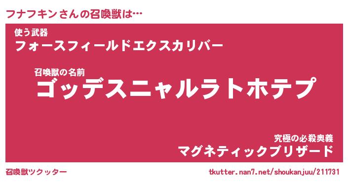 | ヒーロー風カッコイイあだ名 | 『スーパーフナフキン』『幻影騎士フナ』 |