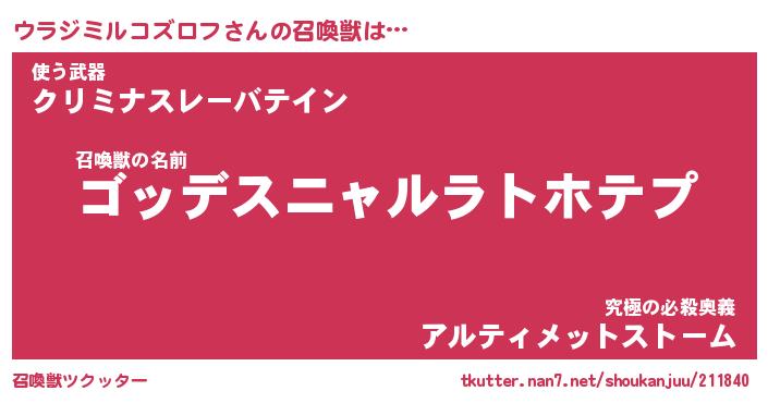 | ヒーロー風カッコイイあだ名 | 『スーパーウラジミルコズロフ』 |