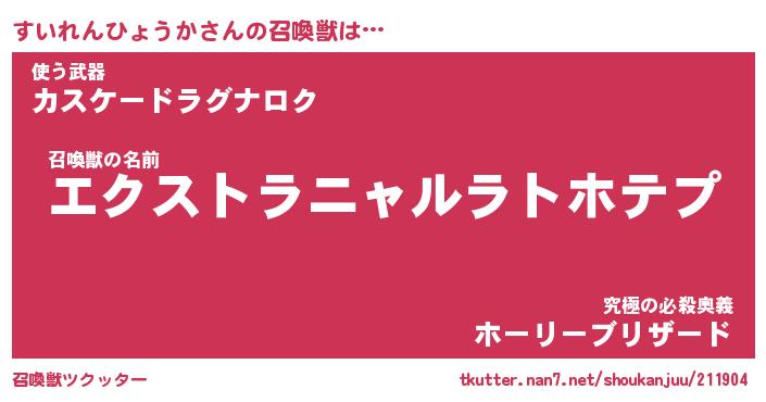 | ヒーロー風カッコイイあだ名 | 『スーパースイレンヒョウカ』 |