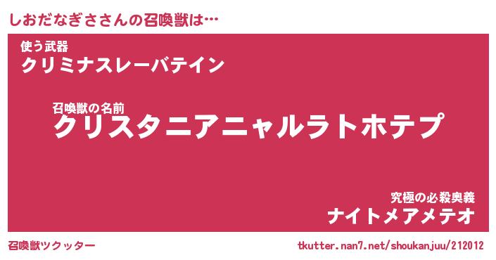 | 胡散臭い通販商品みたいなあだ名 | 『億万長者になれる霊験あらたかなお札…その名も「しおだなぎさ」』 |