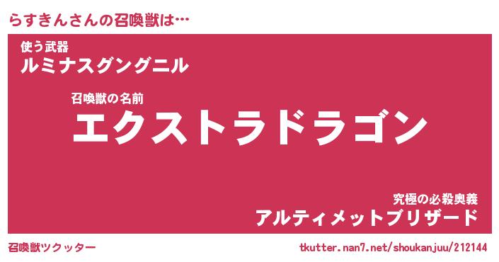 | 伝説のあだ名 | 『伝説の竜騎士らすきん』 |