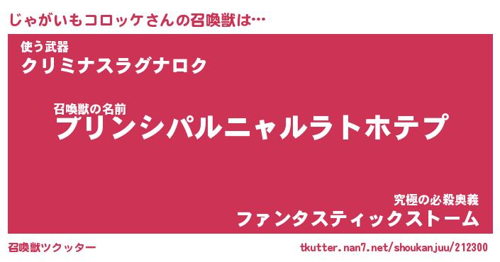 | 男性向けラノベタイトル風あだ名 | 『じゃがいもコロッケの憂鬱』 |