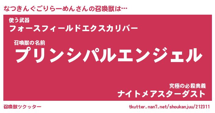 | 女子向けラノベタイトル風あだ名 | 『なつきんぐごりらーめん姫と円卓の騎士』 |