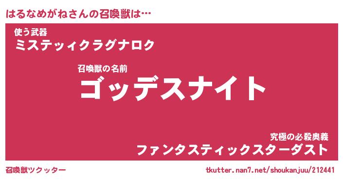 | 自動車の名前っぽいあだ名 | 『ハルティマ』『ハクア』『ハント』 |