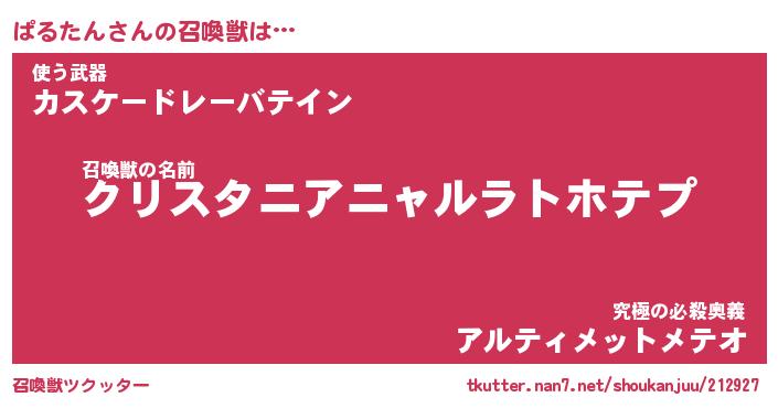 | ツイッター | ぱるたんさんのツイッターID『dendenmushi_nyan』 |
