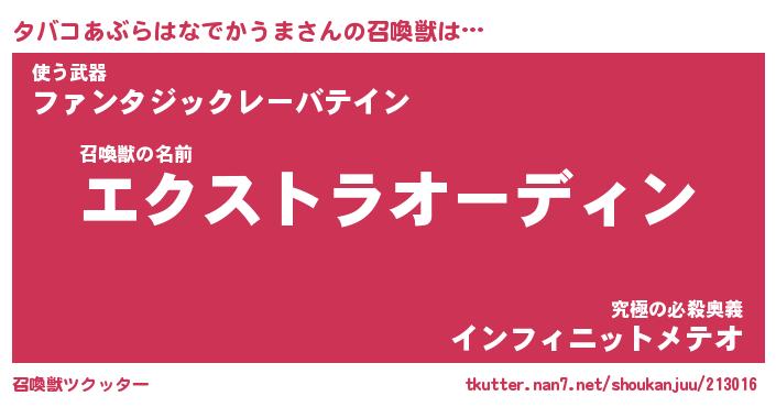 | ヒーロー風カッコイイあだ名 | 『スーパータバコアブラハナデカウマ』 |