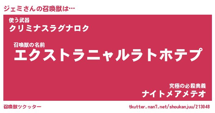 | ファンタジー風あだ名 | 『ジェフェル』『エターナルジェミー』 |