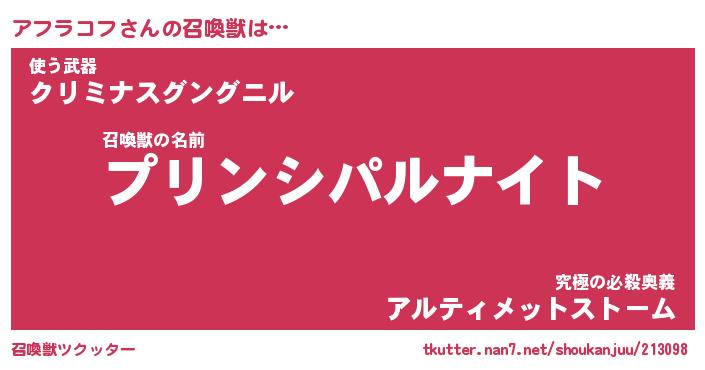 | 女子向けラノベタイトル風あだ名 | 『アフラコフ姫と円卓の騎士』 |