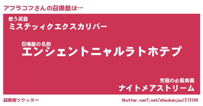 | 男性向けラノベタイトル風あだ名 | 『アフラコフの憂鬱』 |