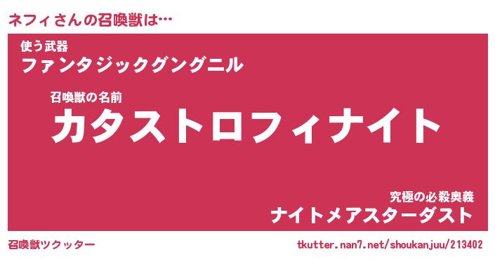 | ファンタジー風あだ名 | 『ネフフェル』『エターナルネフィー』 |