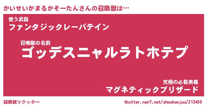 | 胡散臭い通販商品みたいなあだ名 | 『モテモテ間違いなし霊験あらたかなお札…その名も「かいせいかまるかそーたん」』 |