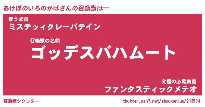 | 欧米人風あだ名 | 『マイケルあけぼのいろのかば』 |