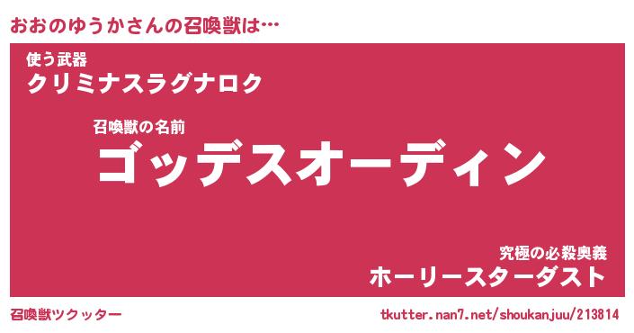 | ヒーロー風カッコイイあだ名 | 『スーパーオオノユウカ』『幻影騎士オオ』 |