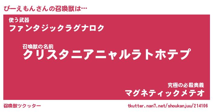 | ツイッター | ぴーえもんさんのツイッターID『namakemono_nyan』 |