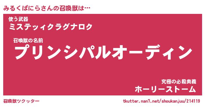 | 男性向けラノベタイトル風あだ名 | 『みるくばにらの憂鬱』 |