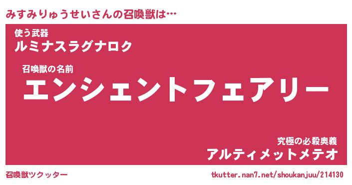 | 男性向けラノベタイトル風あだ名 | 『みすみりゅうせいの憂鬱』 |