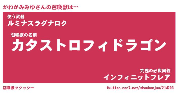 | ヒーロー風カッコイイあだ名 | 『スーパーカワカミミユ』『幻影騎士カワ』 |