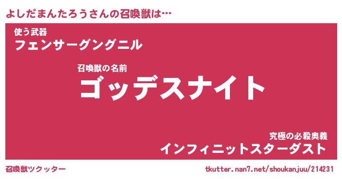 | 伝説のあだ名 | 『不死鳥の傭兵よしだまんたろう』 |