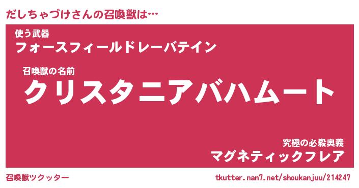 | 伝説のあだ名 | 『封印されし竜騎士だしちゃづけ』 |