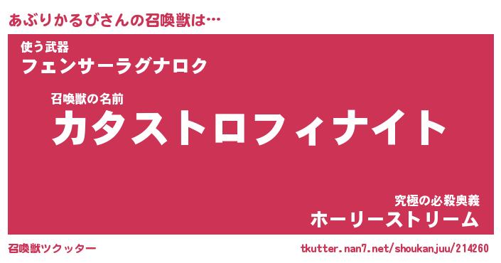 | 伝説のあだ名 | 『封印されし傭兵あぶりかるび』 |
