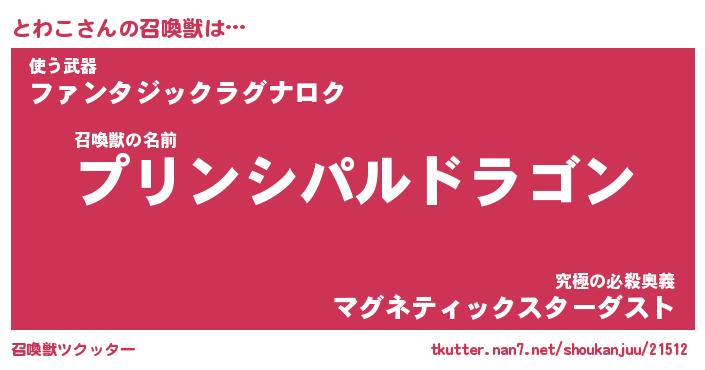 | ポケモン風あだ名 | 『トワチュウ』『トワコダネ』 |