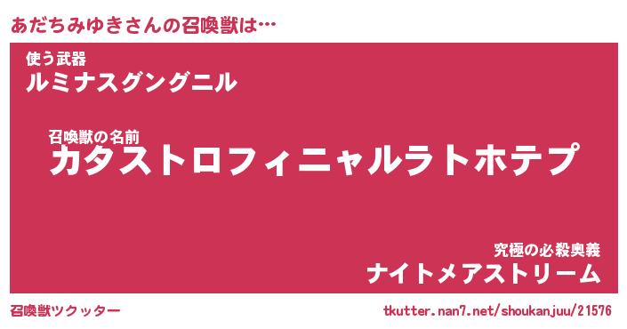 | ヒーロー風カッコイイあだ名 | 『スーパーアダチミユキ』『暗黒騎士アダ』 |